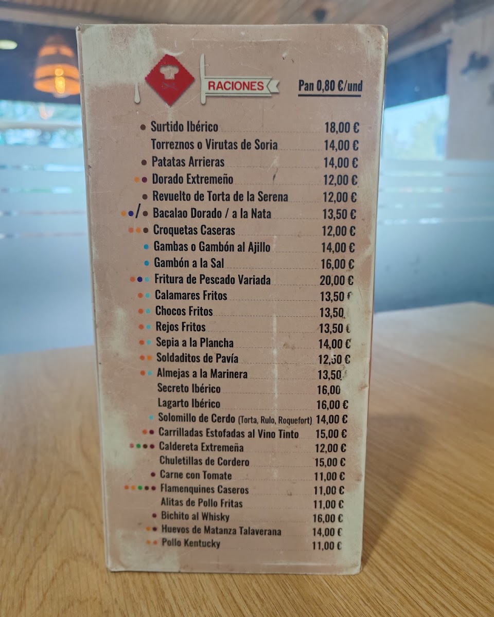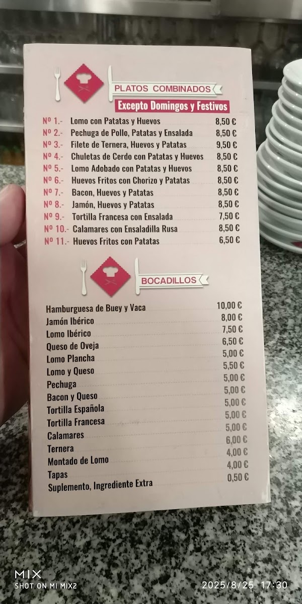 The menu at La gasolinera 375 offers a selection of traditional Spanish bar and grill dishes alongside typical café items. It is structured to accommodate various dining needs, including breakfast, coffee breaks, light meals, and more substantial lunch or dinner options.
